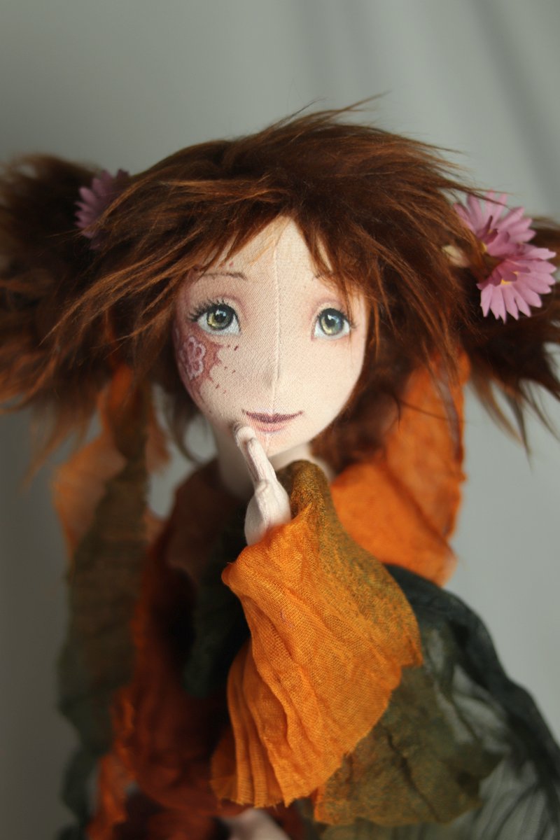 V tvůrčím setu na celotělíčkovou bytost najdete - ušitou, vytvarovanou a ručně namalovanou uměleckou hlavičku, drátěnou polohovatelnou kostru vytvarovanou ovčí vlnou (velikost cca 50 cm), ušité látkové ručičky s polohovatelnými prstíky, chodidýlka a ouška - to kdybyste chtěli líhnout elfíka. Čtyři autorské barvené šátky na omotání těla, různé tématicky a barevně sladěné látky na oblečení krajky a další okrášlení, dále přikládám plsticí jehlu a ovčí vlnu pro případ chuti dotvarovat kostru (vytvořit zadeček prsa atd)